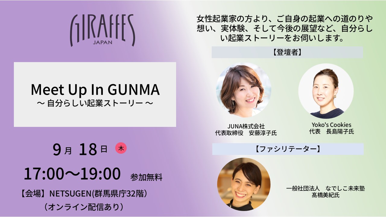 【終了しました】(9/18)Meet Up In GUNMA ~ 自分らしい起業ストーリー ~