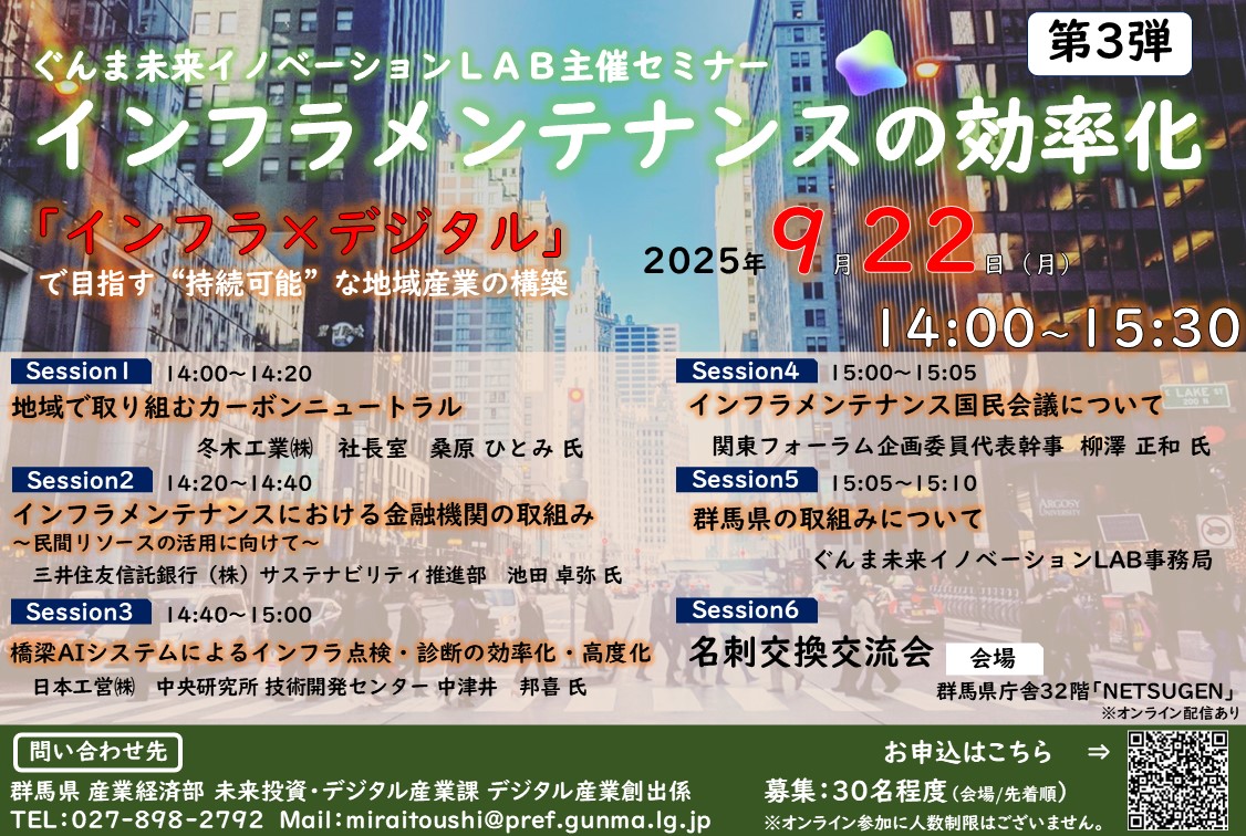 【終了しました】(9/22)ぐんま未来イノベーションLAB主催 インフラメンテナンスの効率化第3弾