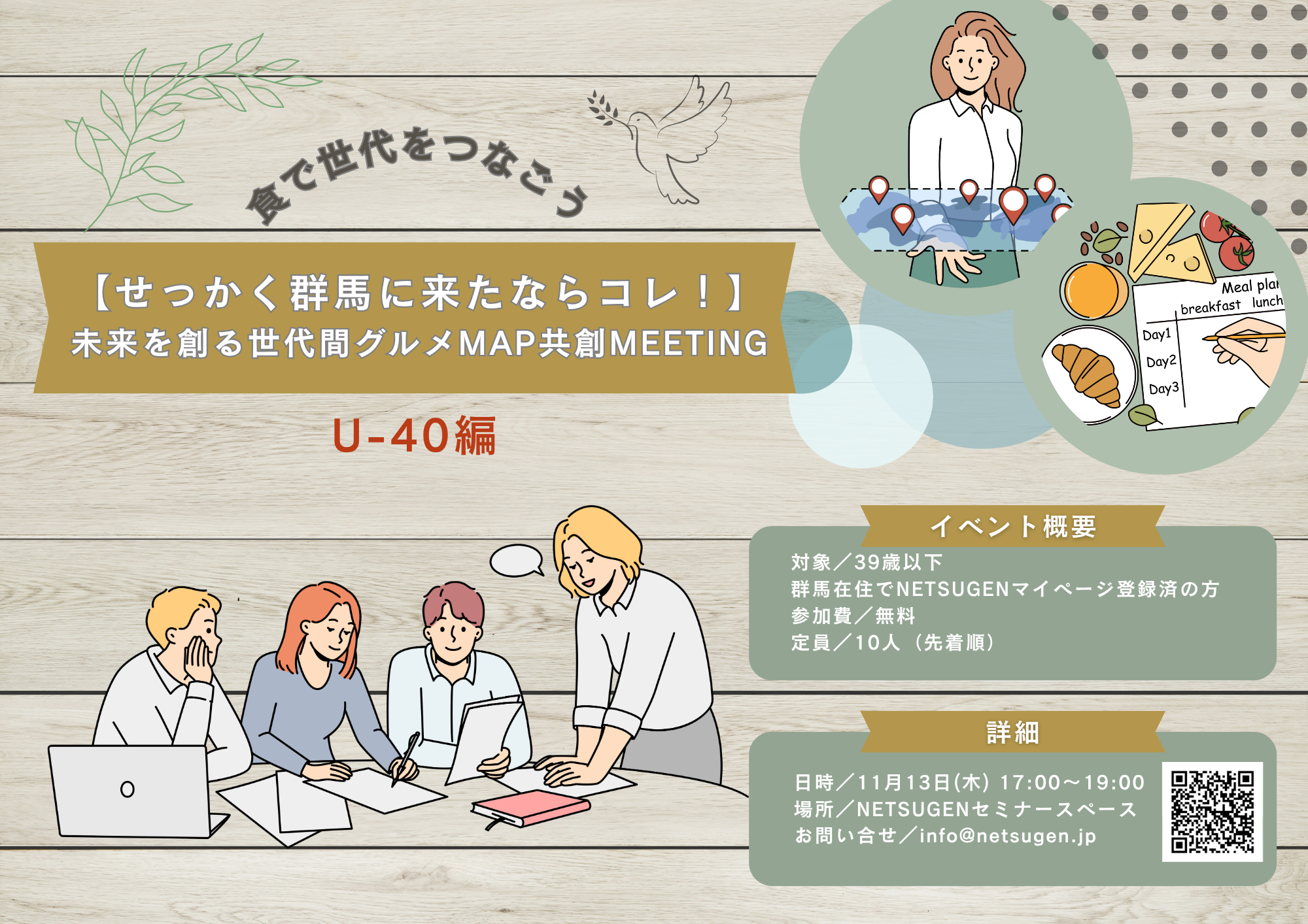 (11/13)世代間交流会【せっかく群馬に来たならコレ!】未来を創る世代間グルメMAP共創Meeting U-40編