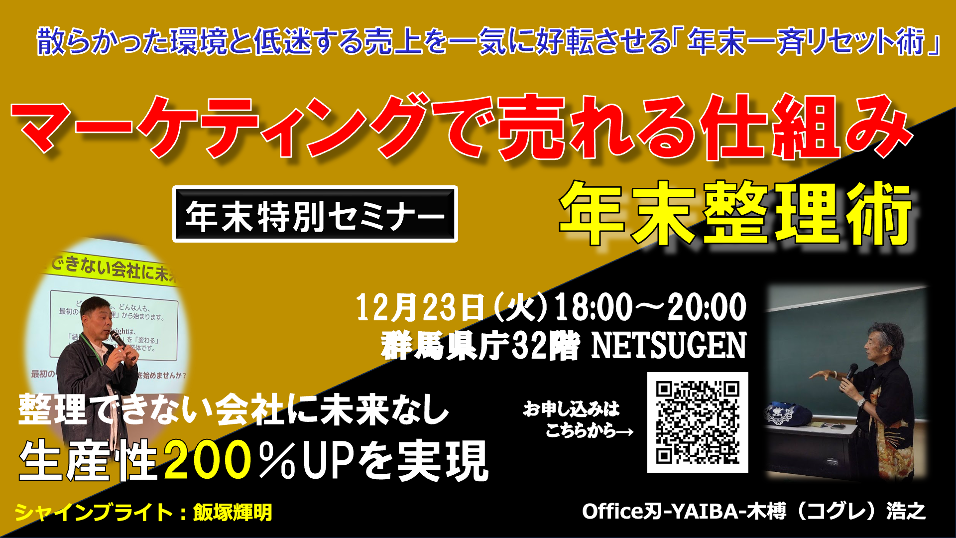 【終了しました】(12/23)年末に差がつく!マーケティングと整理術(初級編|年末拡大版)〜学べば、来年の始動も上手(馬)くいく!〜