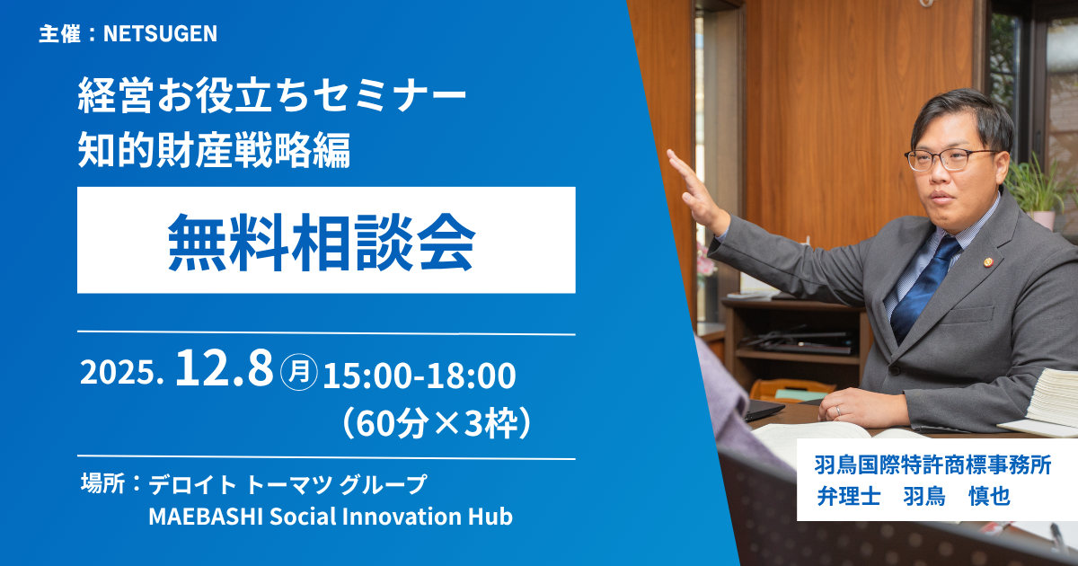 (12/8)【アクエル前橋】経営お役立ちセミナー 知的財産戦略編 無料個別相談会