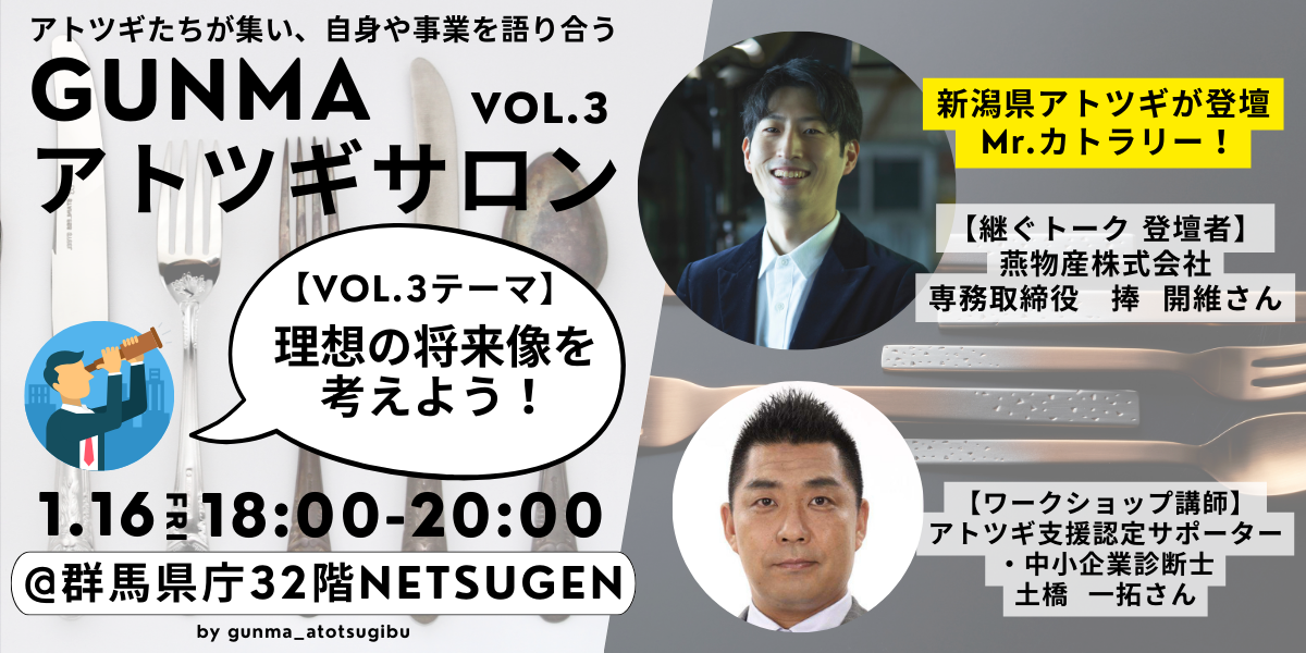 【1/16(金) 開催】GUNMAアトツギサロン Vol.3(企業等の後継者・後継予定者、候補者向け交流会)