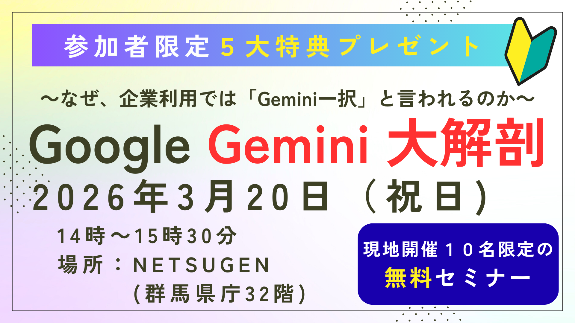 【終了しました】(3/20)【群馬県・現地】Google Gemini 大解剖 ~なぜ、企業利用では「Gemini一択」と言われるのか~
