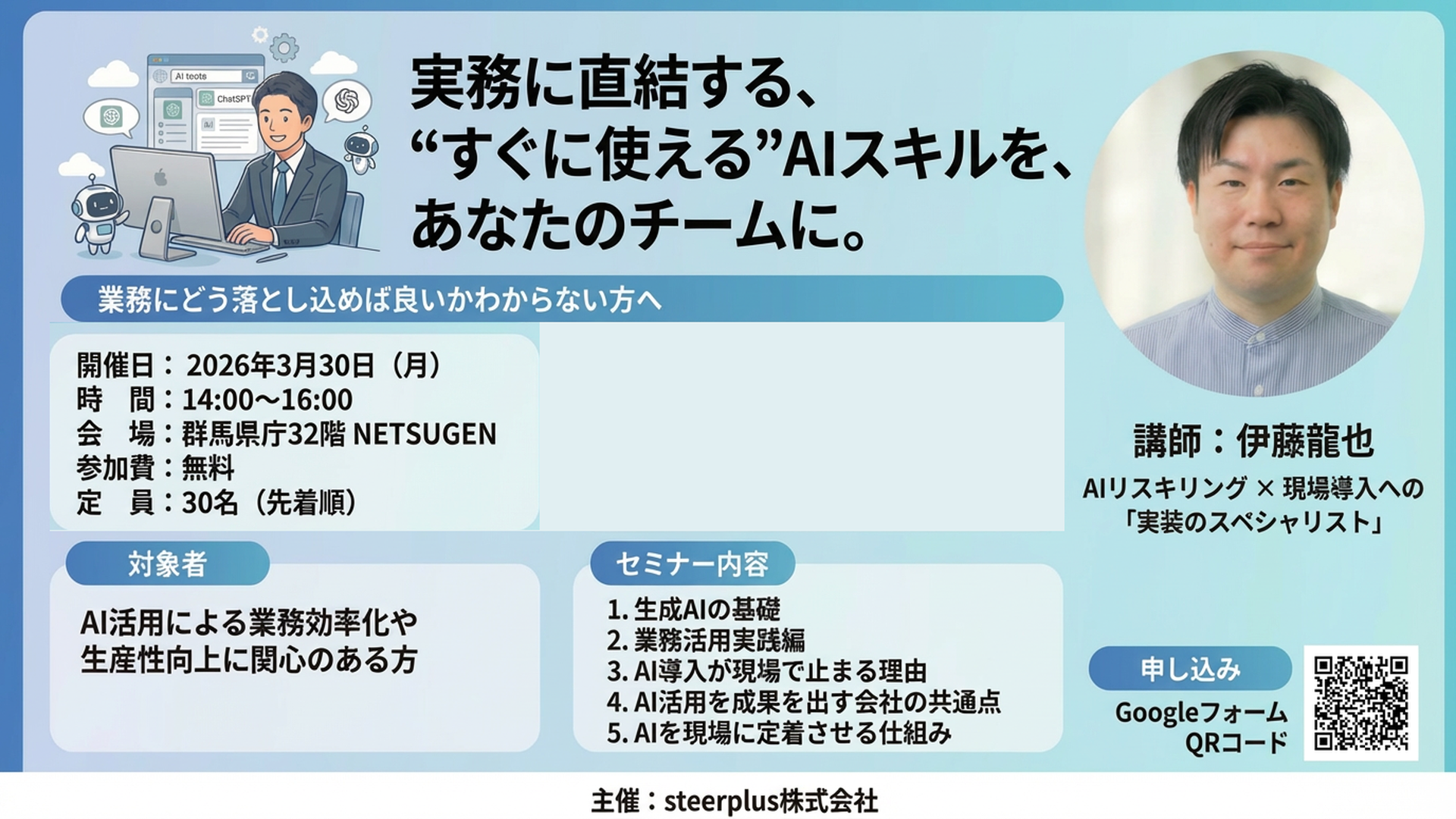 (3/30)実務に直結する、”すぐ使える”AIスキルを、あなたのチームに。