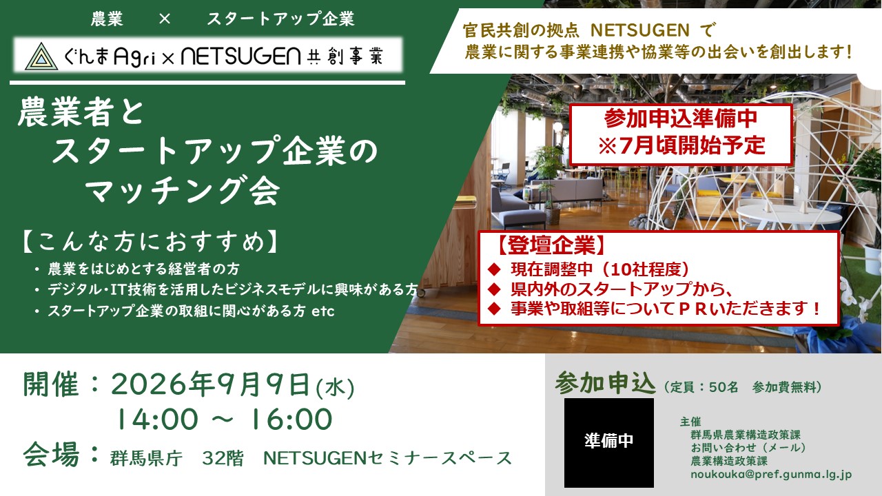 (9/9)「ぐんまAgri×NETSUGEN共創」実証事業 農業者とスタートアップのマッチング会