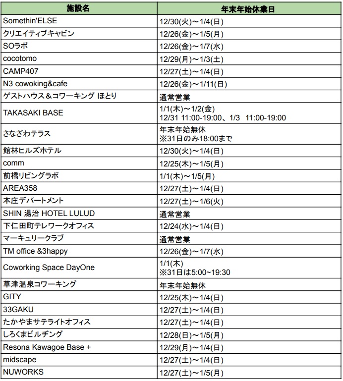 また、NETSUGENアライアンス施設の休業予定は、以下のとおりです。